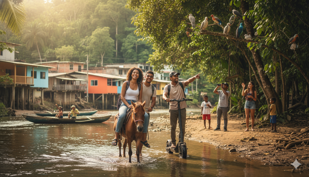 Explora López de Micay con rutas de avistamiento de aves, paseos en potrillo por el río y experiencias al aire libre pensadas para la comunidad y para visitantes de otras ciudades y países. Turis Click ofrece actividades accesibles, seguras y cercanas, ideales para disfrutar en familia o con amigos, con enfoque en turismo responsable y conexión real con el entorno.
